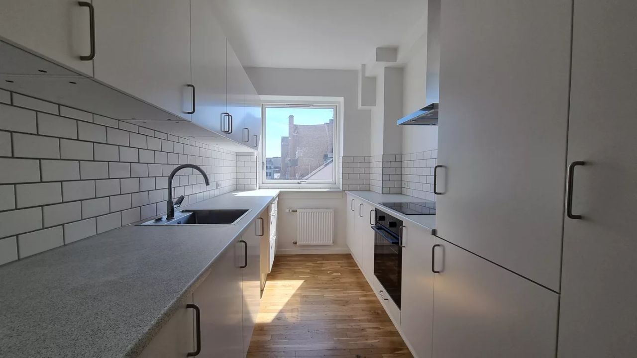 Lejligheden er istandsat fra A til Z og fremstår lys og indbydende med smukke parketgulve, hvidmalede vægge og lofter samt et stilfuldt badeværelse med naturfliser og separat bruseniche. Køkkenet er nyt og moderne i et tidløst, hvidt design med klargjort plads til opvaskemaskine eller vaskemaskine.